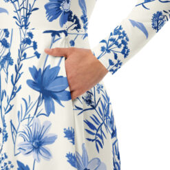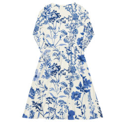 Introducing a serene and elegant pattern that captures the essence of a wildflower meadow in full bloom. This design features an array of delicate flowers and foliage, meticulously illustrated in shades of blue, ranging from soft pastels to rich indigos. Set against a creamy white background, the pattern exudes a sense of tranquility and natural beauty.
