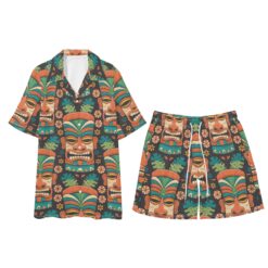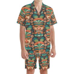 Feel the tiki breeze in this classic two-piece set—short sleeve button-up and matching shorts—built for easy lounging and laid-back flair. Crafted from 100% polyester, it’s light, soft, and ready for sun or shade.