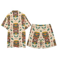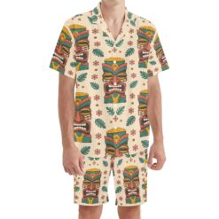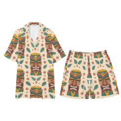 Feel the tiki breeze in this classic two-piece set—short sleeve button-up and matching shorts—built for easy lounging and laid-back flair. Crafted from 100% polyester, it’s light, soft, and ready for sun or shade.