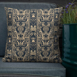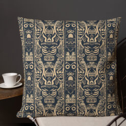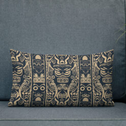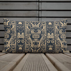 The pattern merges the stark and intricate designs of Nordic culture with the vibrant and spirited essence of Tiki style, presenting a stunning cultural amalgamation. This pattern features Nordic motifs such as angular knotwork and runic symbols intertwined with tropical Tiki icons like palm leaves, pineapples, and stylized tiki figures.