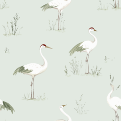 Celebrate calm elegance with the Serenity Crane Collection, a design inspired by nature’s grace and quiet strength. Majestic white cranes with soft green wing tips and crimson crowns stand tall amid delicate wild grasses, evoking scenes of peaceful wetlands and open skies.