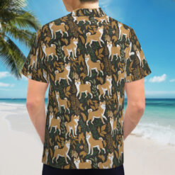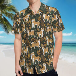 The Shiba Stroll Hawaiian Shirt is a celebration of the playful and spirited nature of Shiba Inu dogs, set against an intricate backdrop of lush botanical elements. With golden-furred Shibas gracefully weaving through deep green and autumn-toned leaves, this pattern exudes both charm and sophistication. The earthy color palette, paired with the classic island aesthetic, makes this Hawaiian Shirt a unique standout piece. Whether you’re out for a casual gathering, a dog-friendly event, or just want to express your love for these confident canines, this shirt captures the essence of joy and adventure.