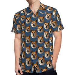 The Shiba Smile Hawaiian Shirt is a bold and playful take on tropical fashion, featuring an all-over pattern of Shiba Inu dog faces set against a striking deep blue background. This quirky and fun-loving design captures the expressive charm of the beloved Shiba Inu, making it a standout conversation piece. Whether you’re a dog lover, meme enthusiast, or simply someone who loves bold and unique prints, this shirt is the perfect addition to your wardrobe.