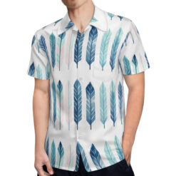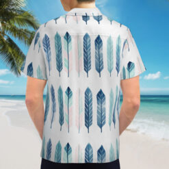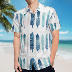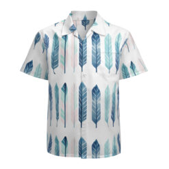 The Feather Drift Shirt embodies the grace and simplicity of nature, featuring elegant feather motifs in soft watercolor hues of navy, aqua, blush, and pastel teal. Each feather’s linear design and subtle shading evoke a sense of gentle movement, reminiscent of feathers drifting on a breeze. The serene color palette, set against a crisp white background, adds an airy, tranquil aesthetic perfect for relaxed summer days and laid-back evenings.