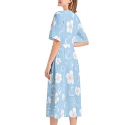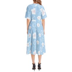 The Ocean Breeze Blooms Collection – Short Sleeve Waist Folding Midi Dress
