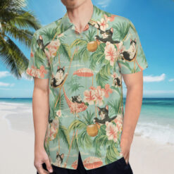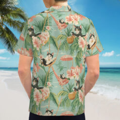 The Swingin’ Island Cats Shirt whisks you away to a tropical haven where hammock-loving cats and lounging felines sway in woven swings among vibrant hibiscus blooms and lush palm fronds. The soft seafoam sky sets a dreamy backdrop, while splashes of coral, cream, and green bring the scene to life. This whimsical print captures the bliss of island living—complete with coconuts, sunshine, and cats soaking up the good life. Perfect for beach days, tiki parties, or everyday adventures with a touch of feline charm.