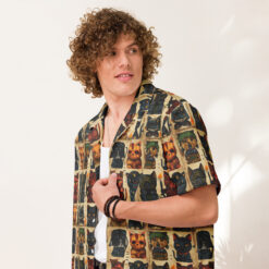 This shirt’s backstory traces back to the adventures of Captain James Cook, who, during his voyages, brought back tiki artifacts to Europe, sparking fascination and a wave of cultural appreciation. Wearing this shirt is like donning a piece of history, connecting you to the ancient traditions and modern resurgence of tiki culture.