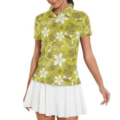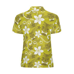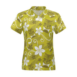 The Tropical Reverie Polo Shirt is a celebration of bold island charm, featuring intricate tiki mask motifs intertwined with blooming white plumerias and swirling vine patterns. Set against a vivid golden backdrop, this design radiates the energy of a sun-drenched paradise. Whether you’re at a casual brunch or relaxing by the shore, this polo adds an effortless touch of Polynesian elegance to your wardrobe.