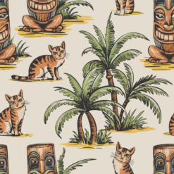 The Tiki Cat Island Hawaiian Shirt brings together two icons of relaxation: tiki culture and island cats. This vintage-inspired design features playful tabby cats lounging among lush palm trees and grinning tiki statues, capturing a whimsical, tropical vibe. Earthy tones of warm browns, deep greens, and sandy yellows add to its nostalgic, hand-drawn charm. Whether you’re sipping cocktails at a tiki bar, strolling the boardwalk, or just embracing a laid-back lifestyle, this shirt is a fun and stylish addition to your wardrobe.