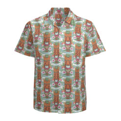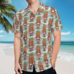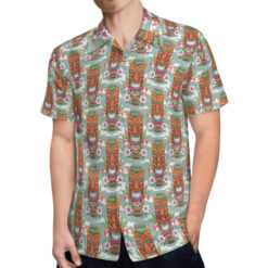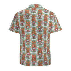 - Design: Features an all-over vibrant Tiki print with short sleeves, a lapel collar, and a button-down style for easy wear.
