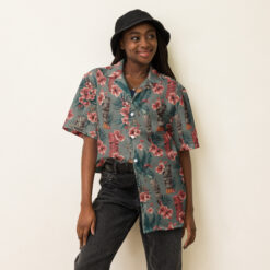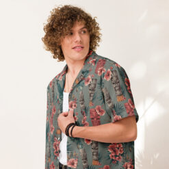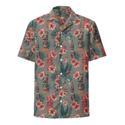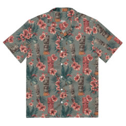 Dive into tropical vibes with our Hawaiian shirt featuring a stunning Tiki-inspired pattern. This design showcases bold Tiki totems set against a lush backdrop of vibrant hibiscus flowers and tropical foliage. The rich greens and pinks bring a touch of paradise to your wardrobe, perfect for beach outings, tiki parties, or casual summer days. Crafted from lightweight, breathable fabric, this shirt ensures comfort while making a style statement. Embrace the spirit of Aloha and add a splash of island culture to your look with this unique and eye-catching pattern.